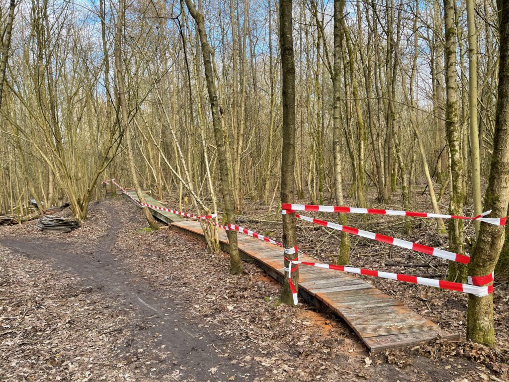 Omdat de North Shore nog niet is te gebruiken hebben we de ingang afgezet met een lint.