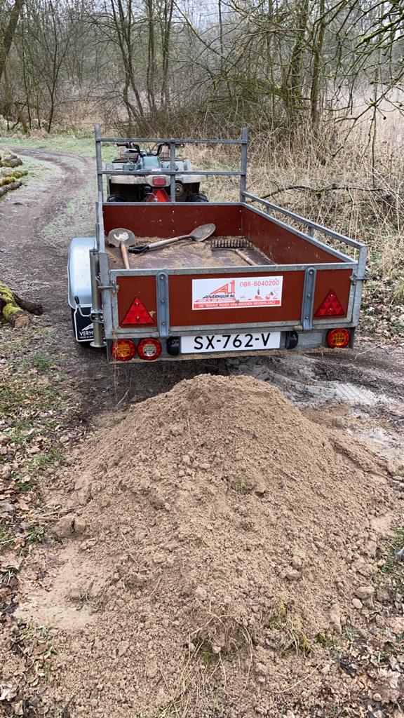 De rockgarden die vorig jaar is aangelegd – zo’n 20 meter – is voorzien van een zandlaag om zo de grote gaten tussen de stenen te voegen. Dit lijk nu nog een hele forse laag maar na een paar regenbuitjes zal dit goed verdelen, we verwachten dat we dit nog een paar keer moeten doen.